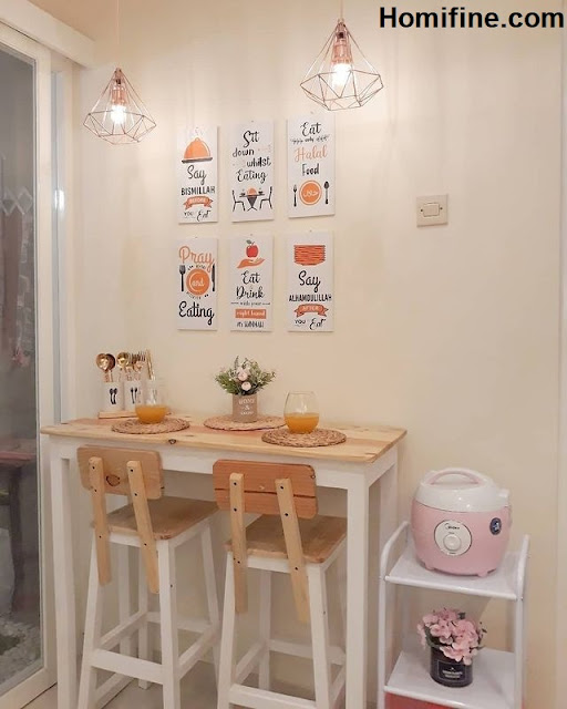Having a minimalist dining room makes it a challenge to create a space that is not boring by decorating it using a colorful and attractive touch to change the atmosphere in this tiny dining room.