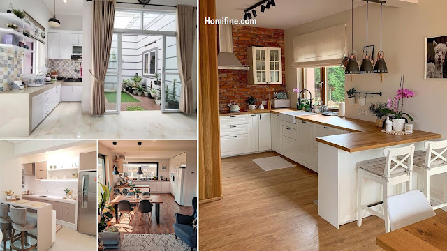 Small house that apply open concept can make you have spacious room. You can make continuing between kitchen and other room. With U-shape, you can make the side of kitchen table use for mini bar. Then, wear white and transparent curtain at window for pretty and clean kitchen.