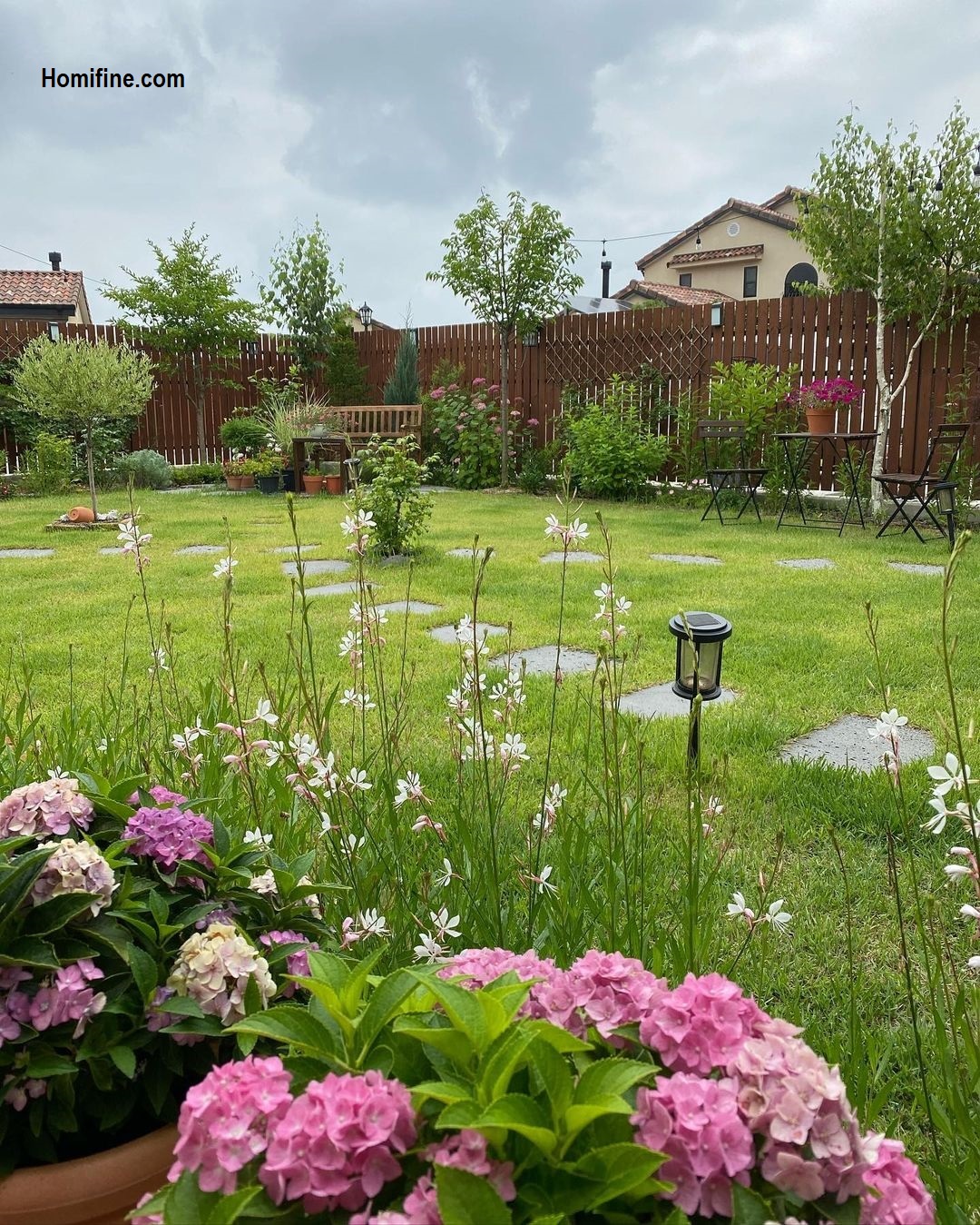 Then, if your garden is open and haven't divided it into different sections, you can make a plan to divide the space. You don't need to create solid divisions like wall or fence, just do with large trees, shrubs that can block a certain part.